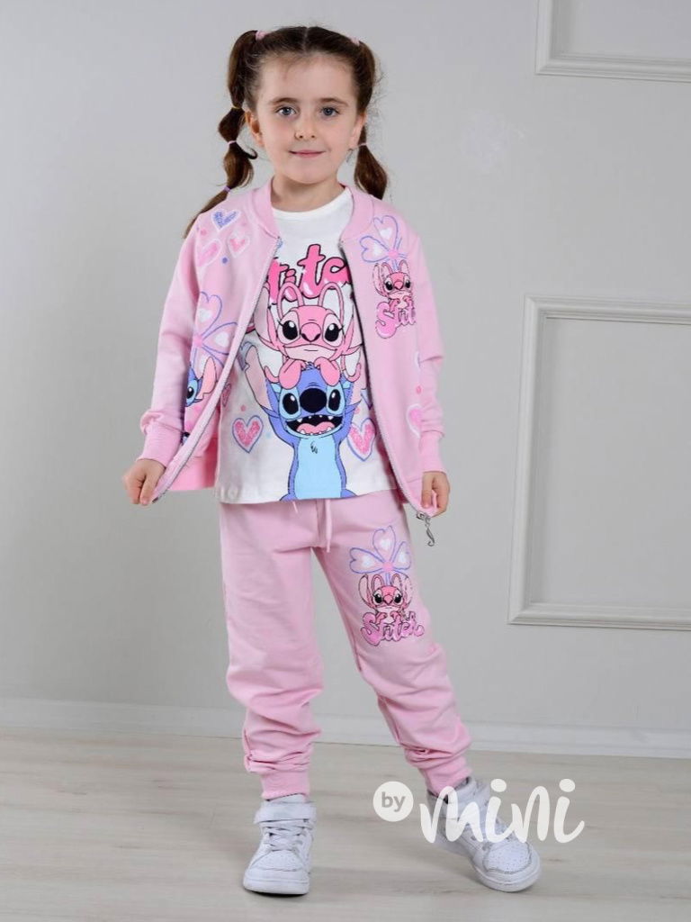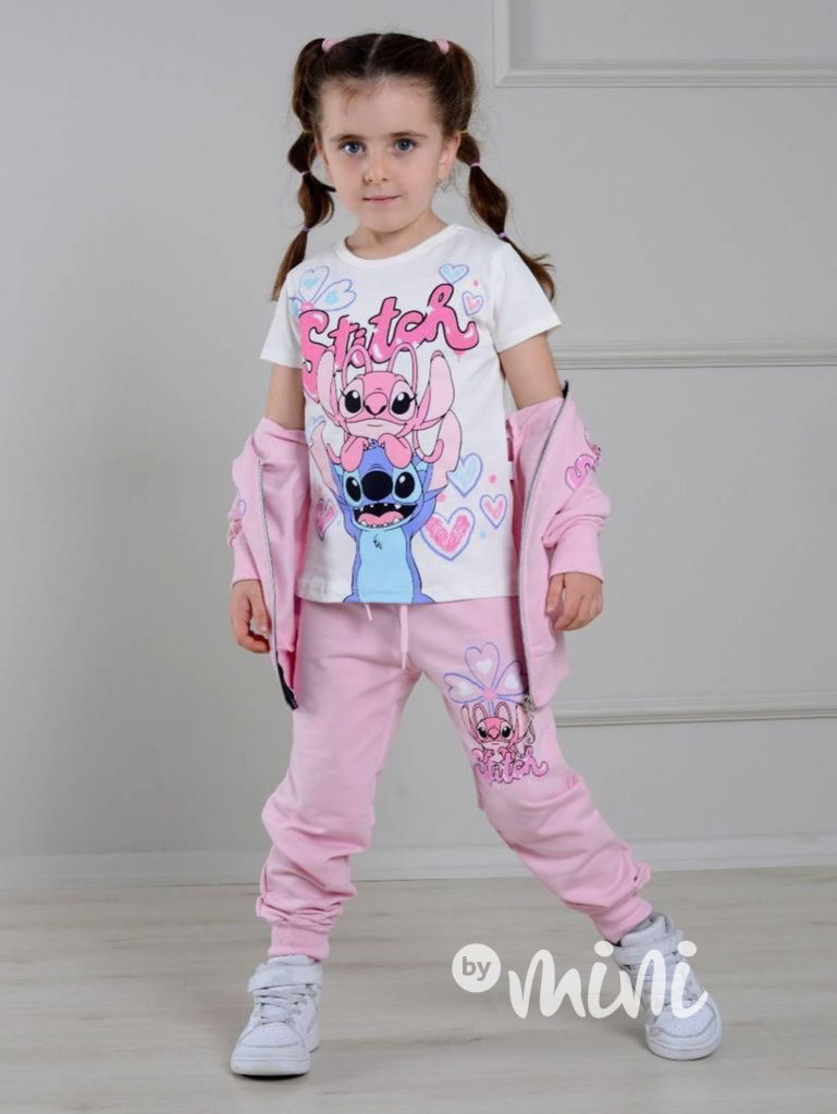 Bavlněná tepláková souprava s motivem STITCHe: mikina + tepláky + triko s krátkým rukávem.