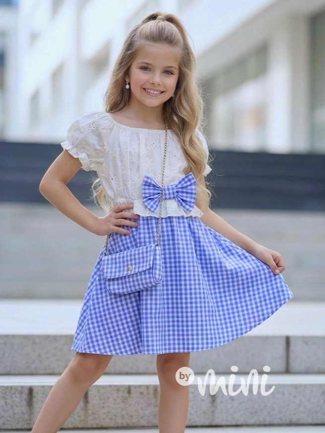 Krásné letní šaty - vršek madeira, spodní díl kostkovaný + kabelka do setu.