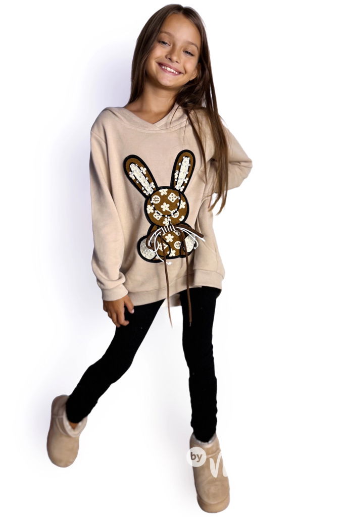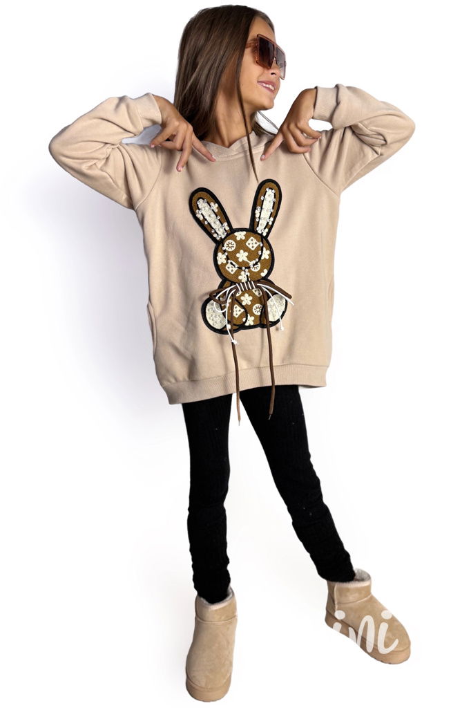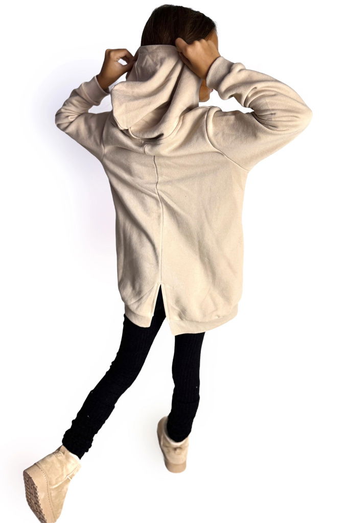 Premium bavlněná long mikina, delší díl prodloužený, vpředu aplikace, kapsy po stranách, super na legínky.