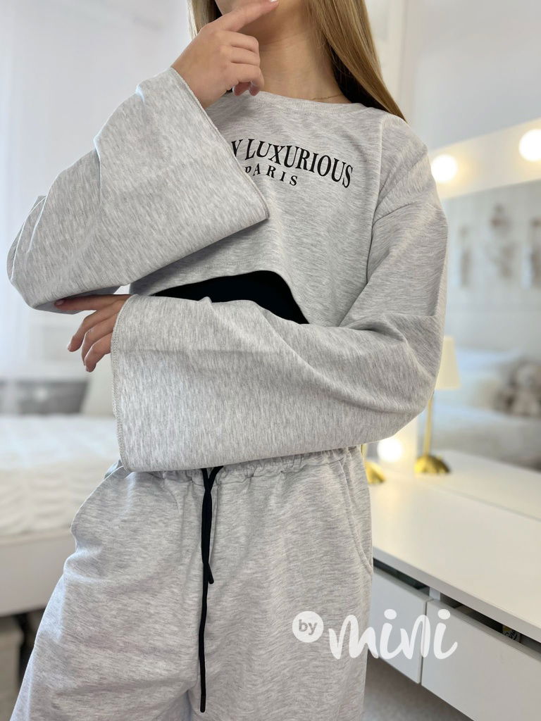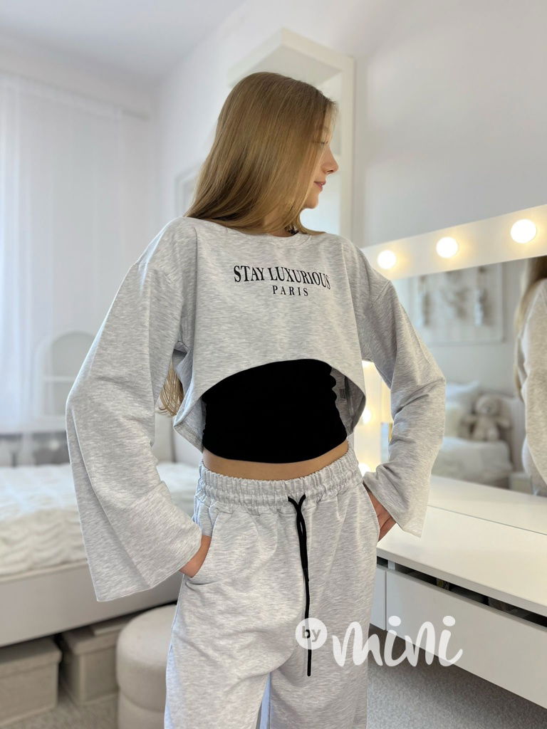 Premium bavlněná souprava teenage: crop mikina + černý topík + colné kalhoty.