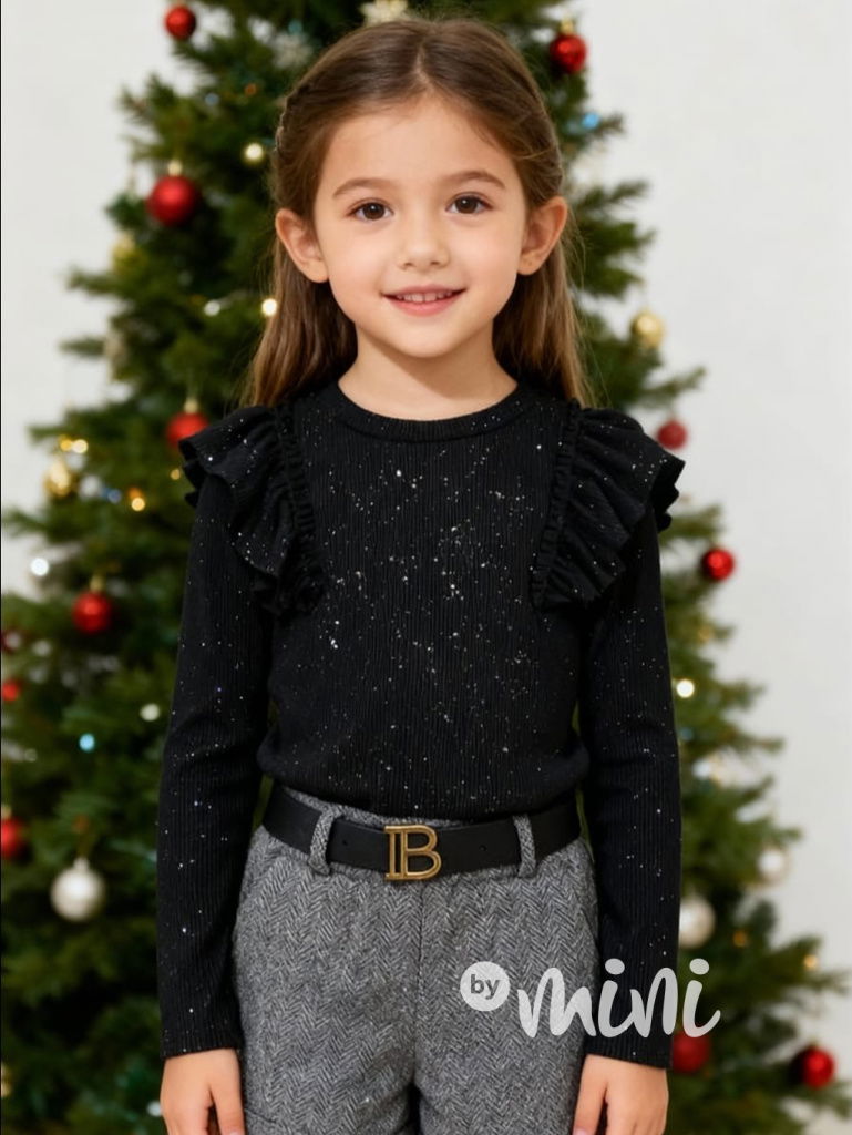 Stretch žebrovaná luxury blůzka se stříbrným zdobením, řasení kolem ramen - moc hezký kousek.