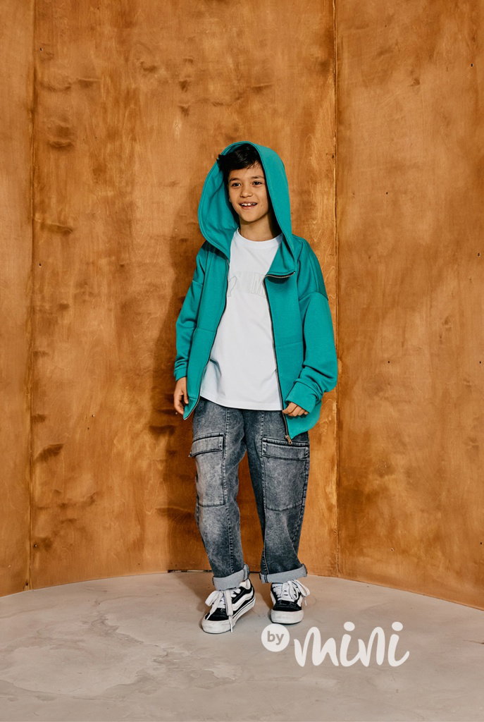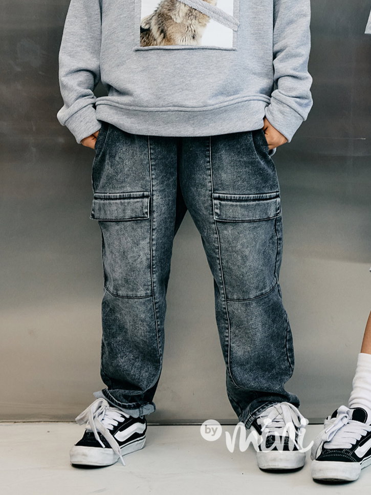 Designové volné baggy jeansy, soft džínovina, pas na stretch gumu, kapsy po stranách.