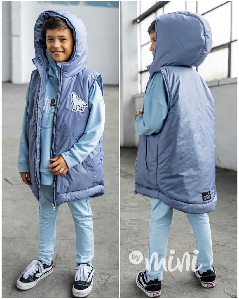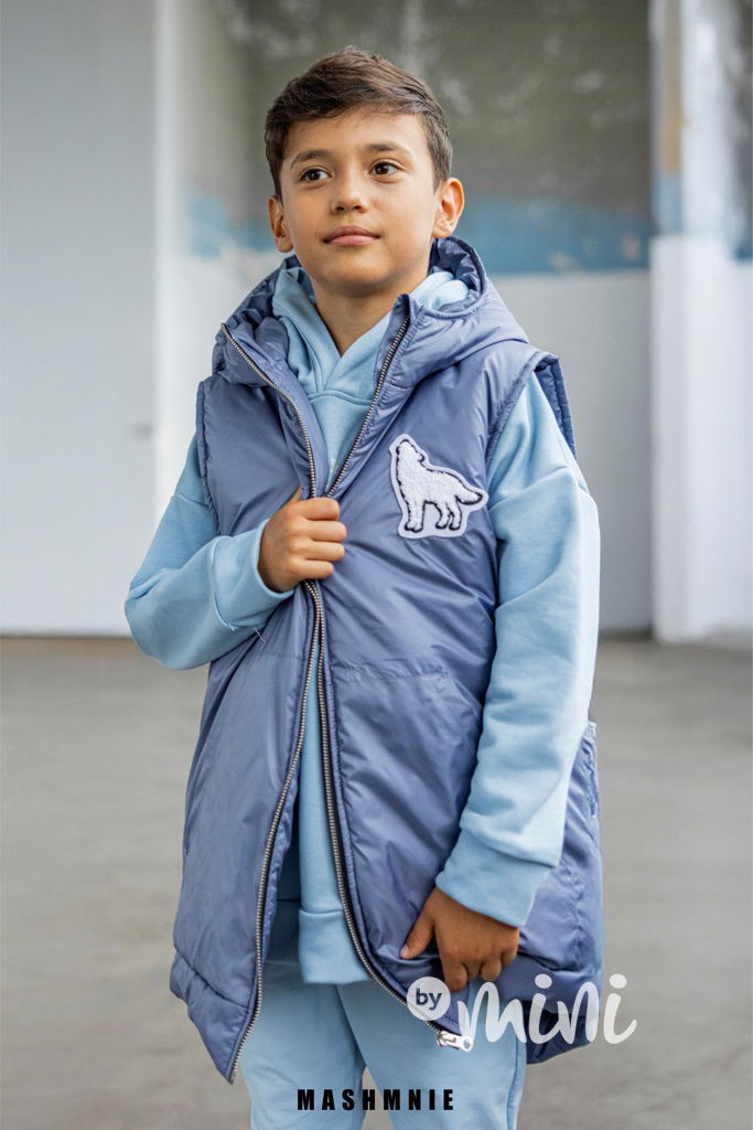 Designová podzimní vesta s motivem vlka, Mash Mnie černé logo.