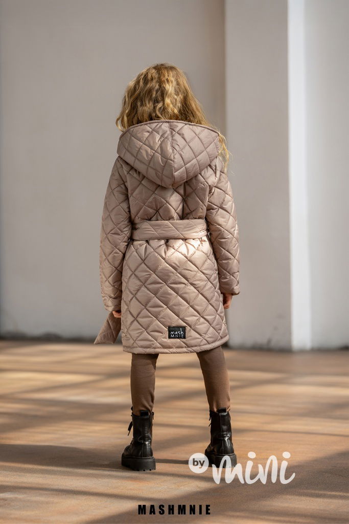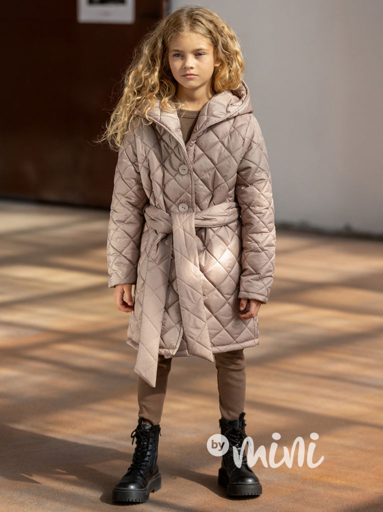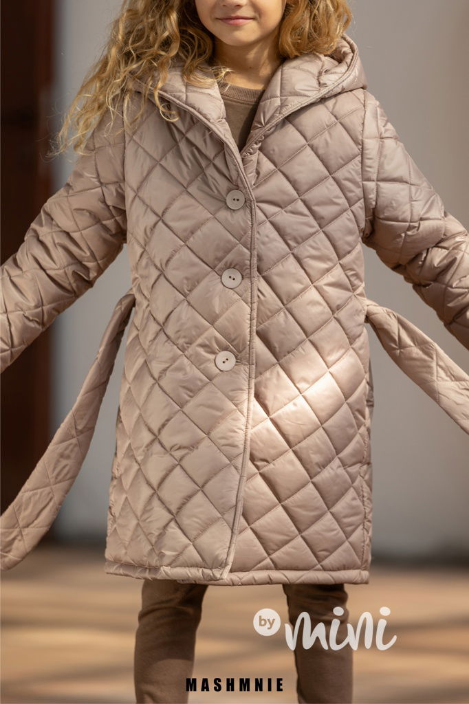 Designový zimní prošívaný kabát na knoflíčky, pásek.