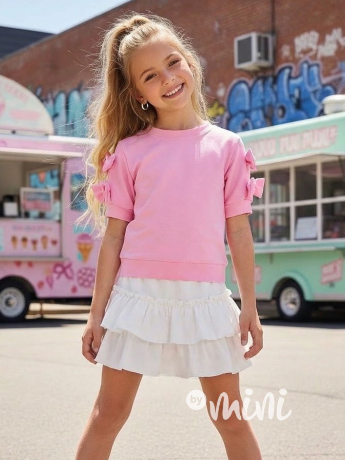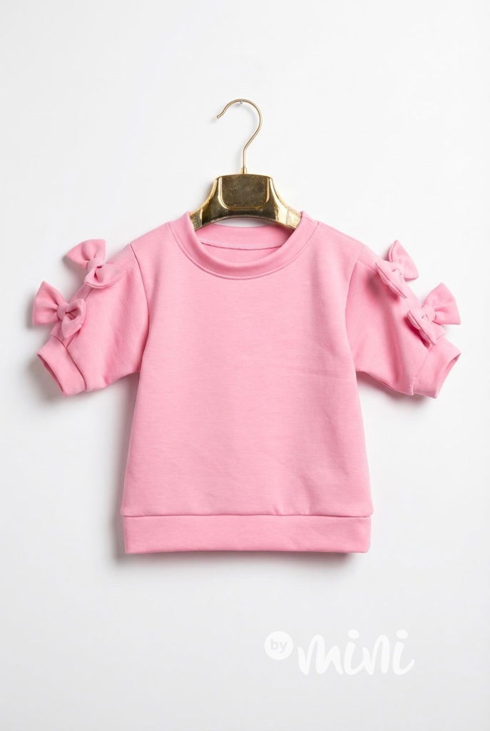Trendy mikinová blůzka s krátkým rukávem s mašličkami na rukávech.
