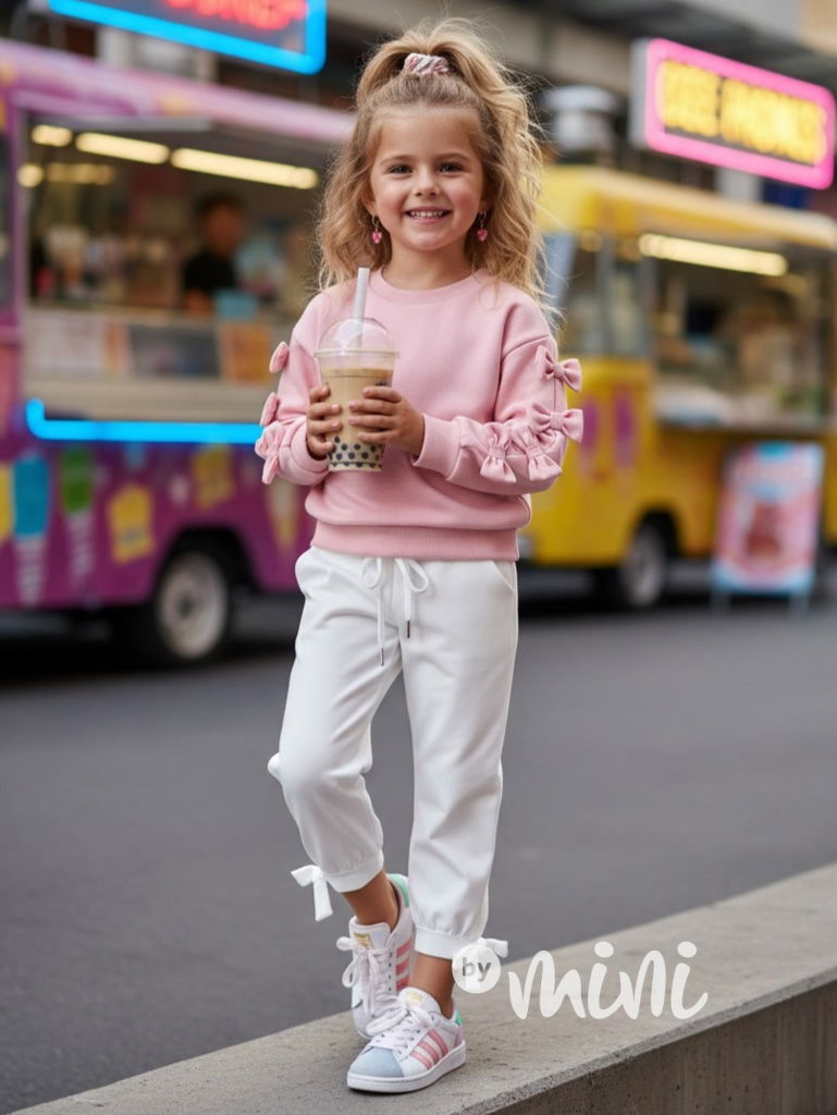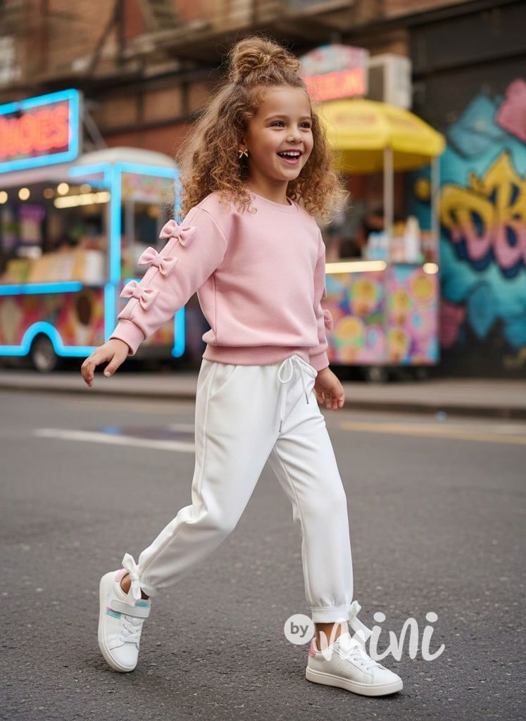 Trendy jarní kalhoty, v dolní části na mašličku (zavazuje se), pas na stretch gumu, kapsy po stranách.