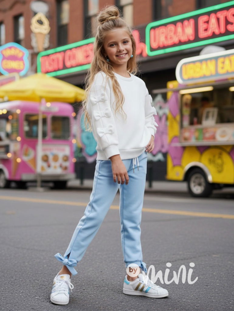 Trendy jarní kalhoty, v dolní části na mašličku (zavazuje se), pas na stretch gumu, kapsy po stranách.