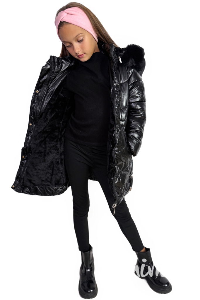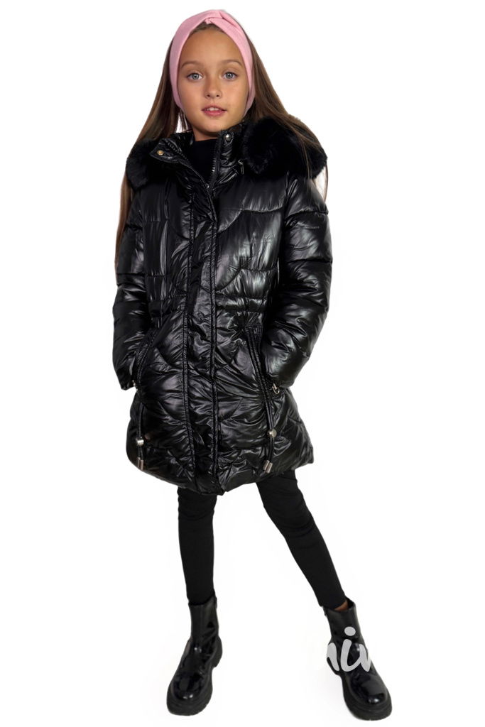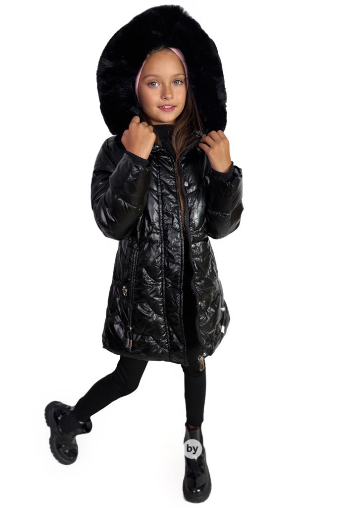 Krásný zimní prošívaný kabátek, uvnitř vyteplený kožíškem, kapuce odnímatelná (kožíšek také).