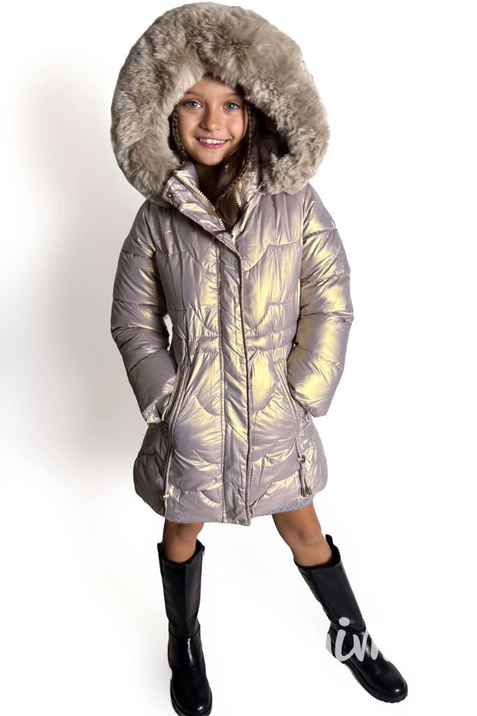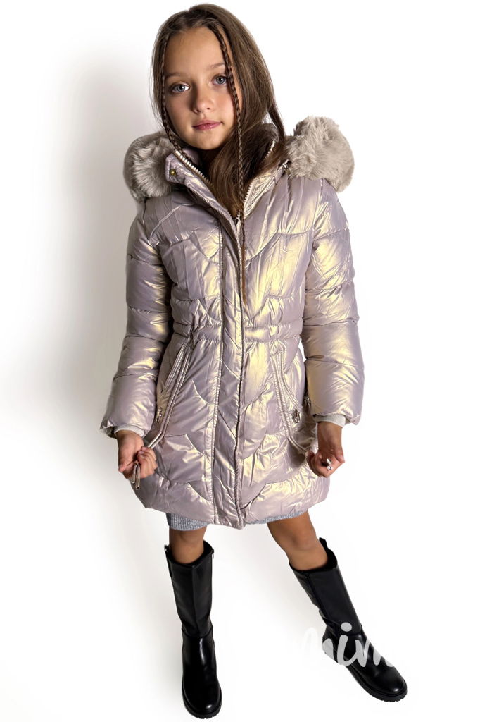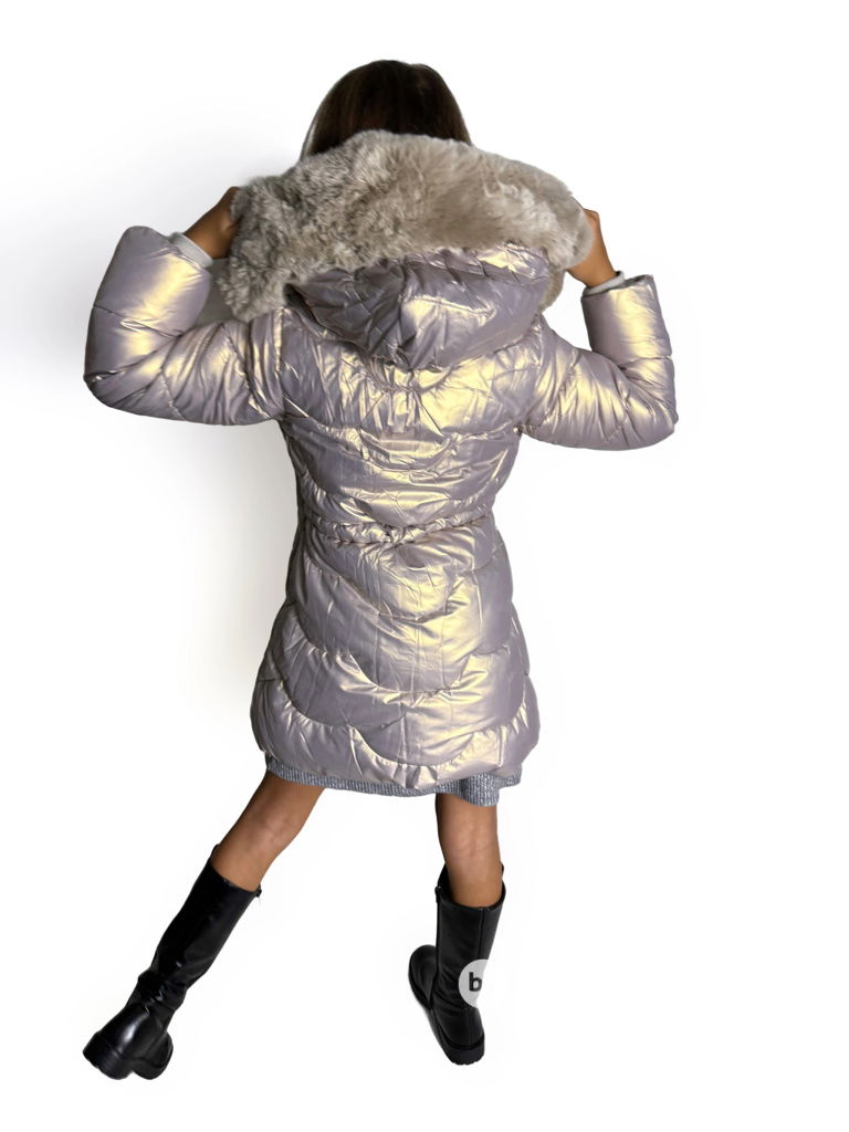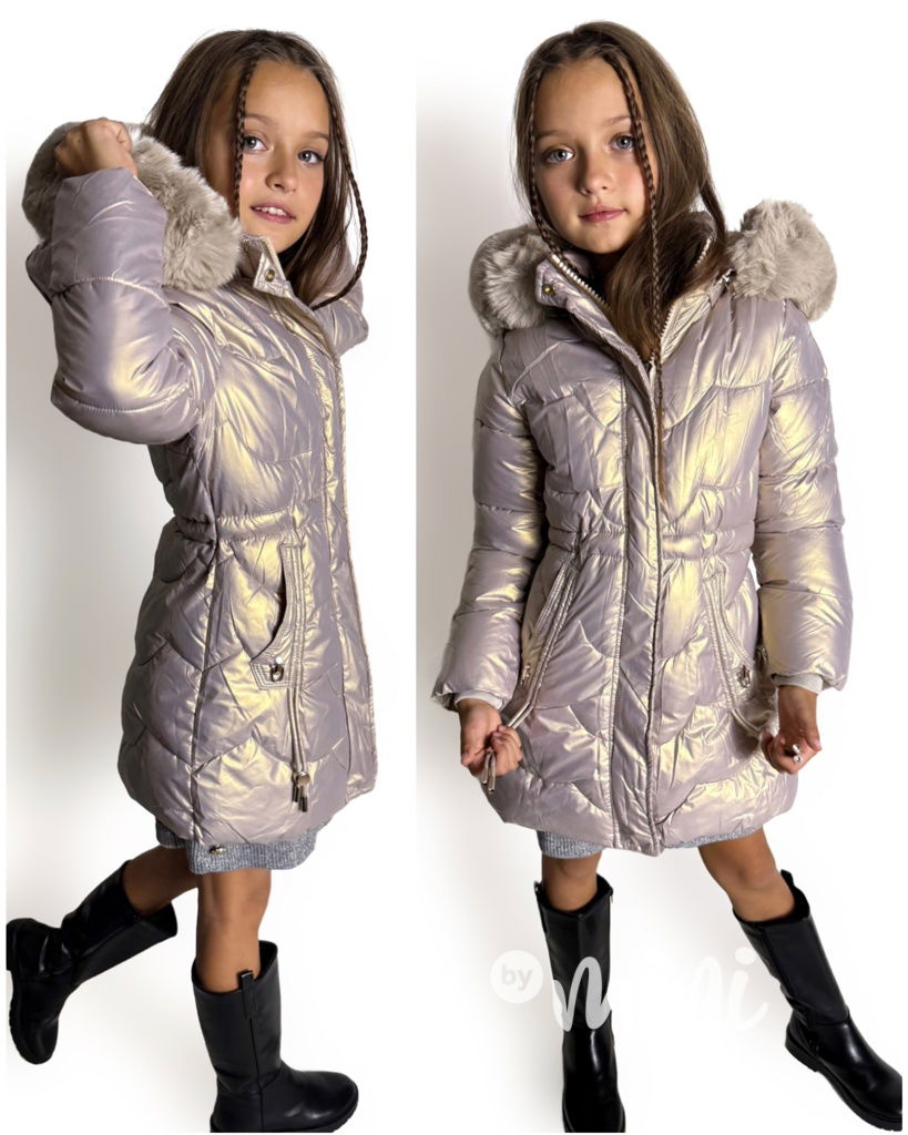 Krásný zimní prošívaný kabátek, uvnitř vyteplený kožíškem, kapuce odnímatelná (kožíšek také).