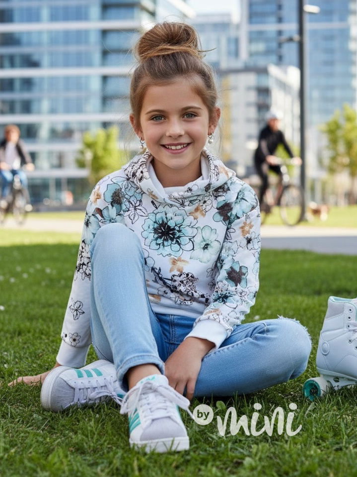 Soft velur mikina s motivem kytiček.