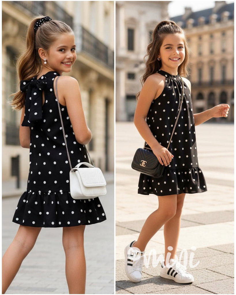 Mini chic šaty s puntíky černé