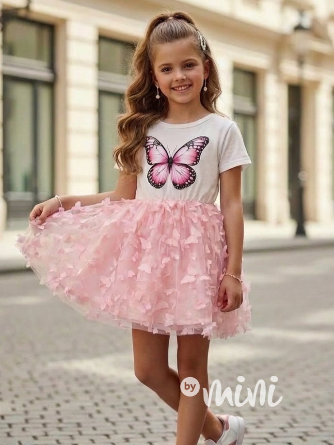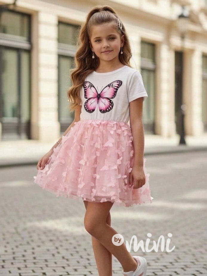 Krásné letní šaty, sukýnka posetá 3D motýlky + kabelka do setu.