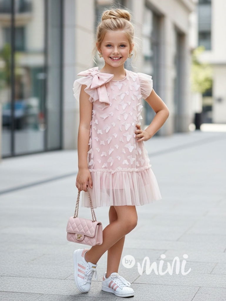 Motýlkové šaty s mašlí růžové