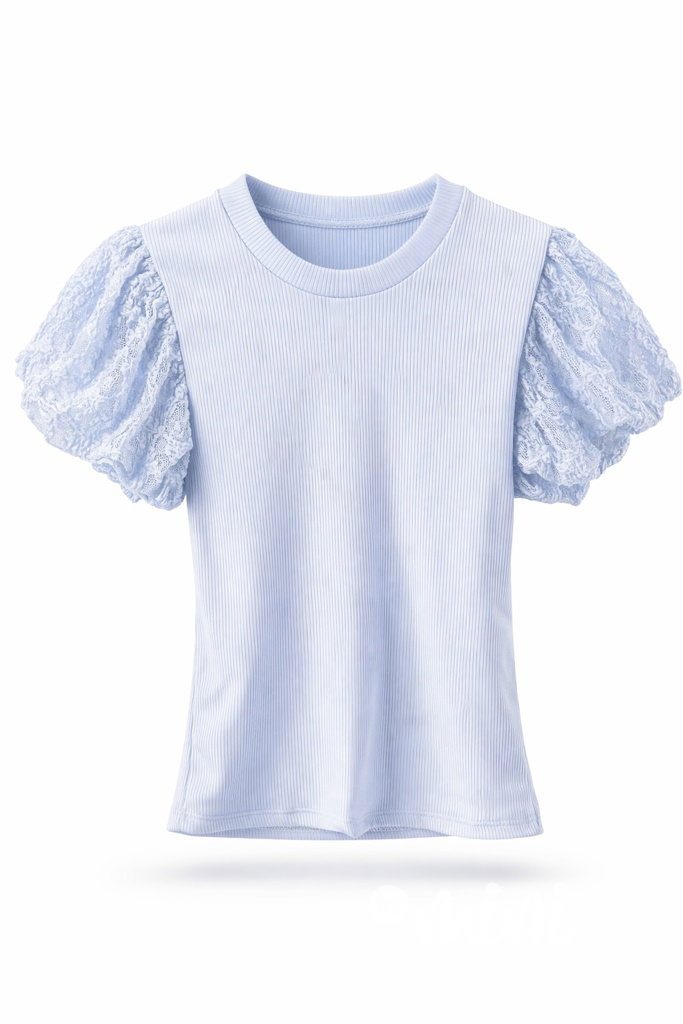 Stretch žebrovaná blůzka s nadýchanými krajkovými rukávy.