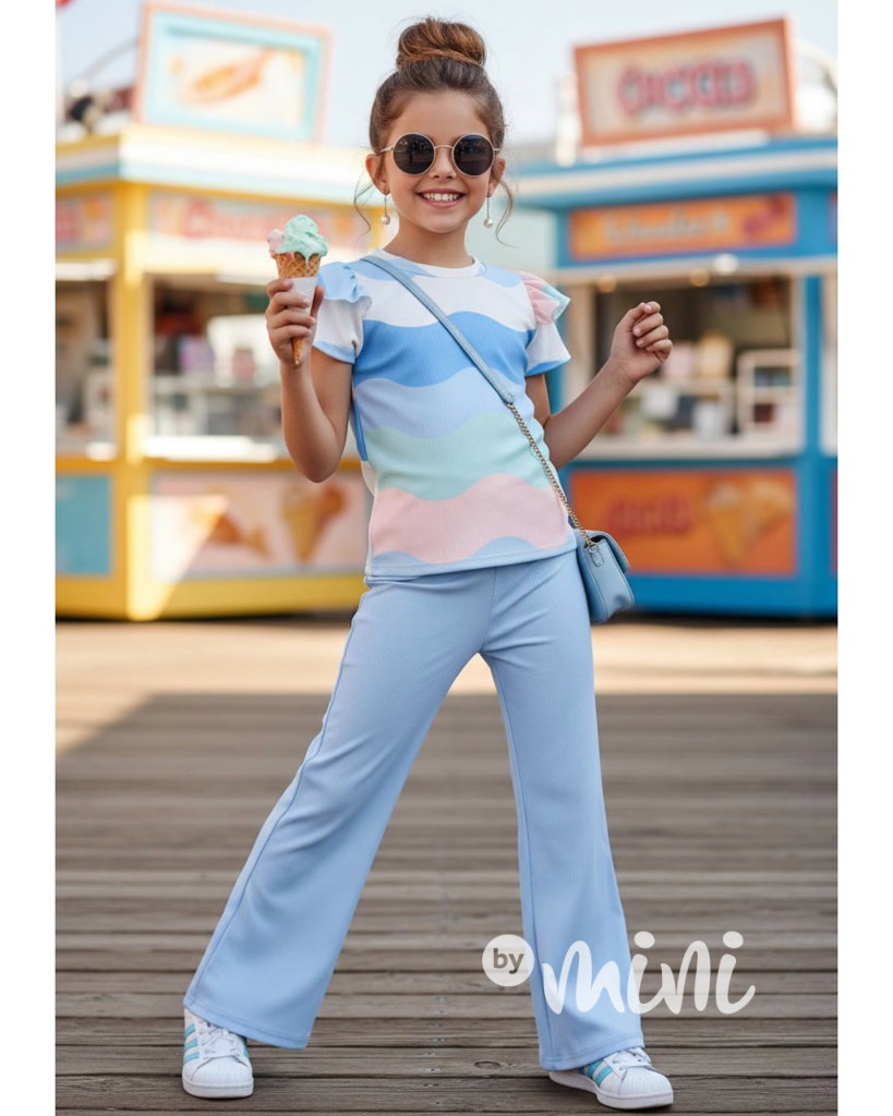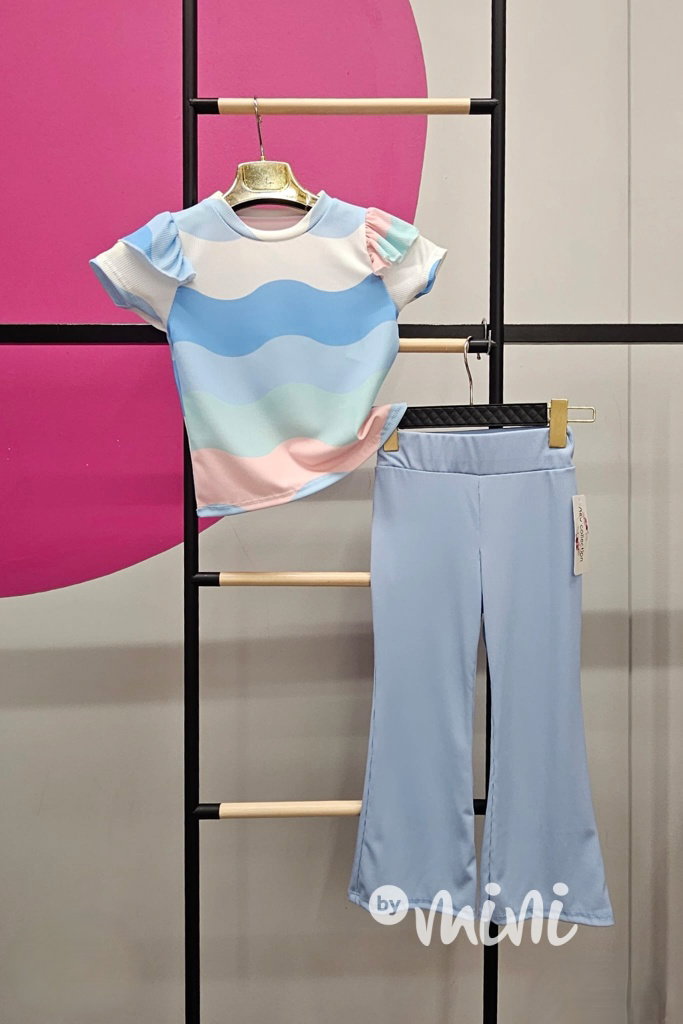 Pastel blůzka + zvonáče blue