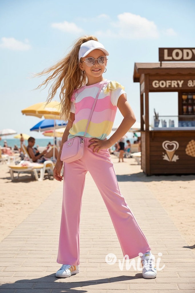 Stretch žebrovaná souprava: blůzka s řasením na rukávech + zvonáče.