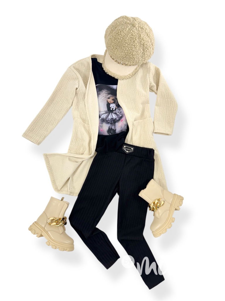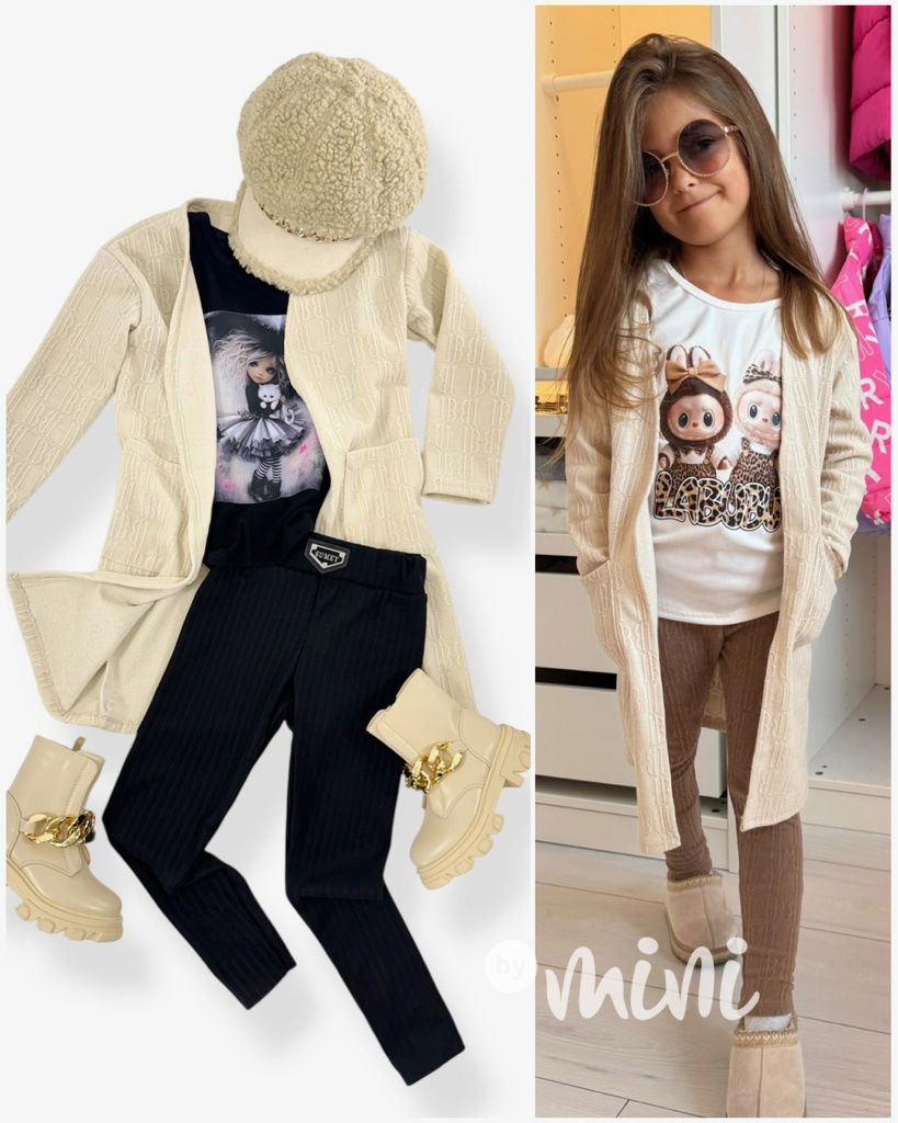 Dlouhý otevřený teplý kardigan se strukturou, kapsy.