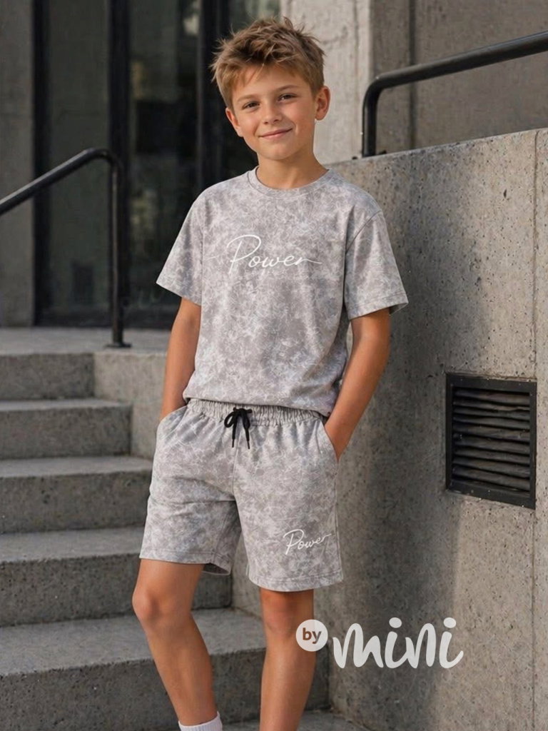 Stylová bavlněná souprava pro chlapce: triko + kraťasy.