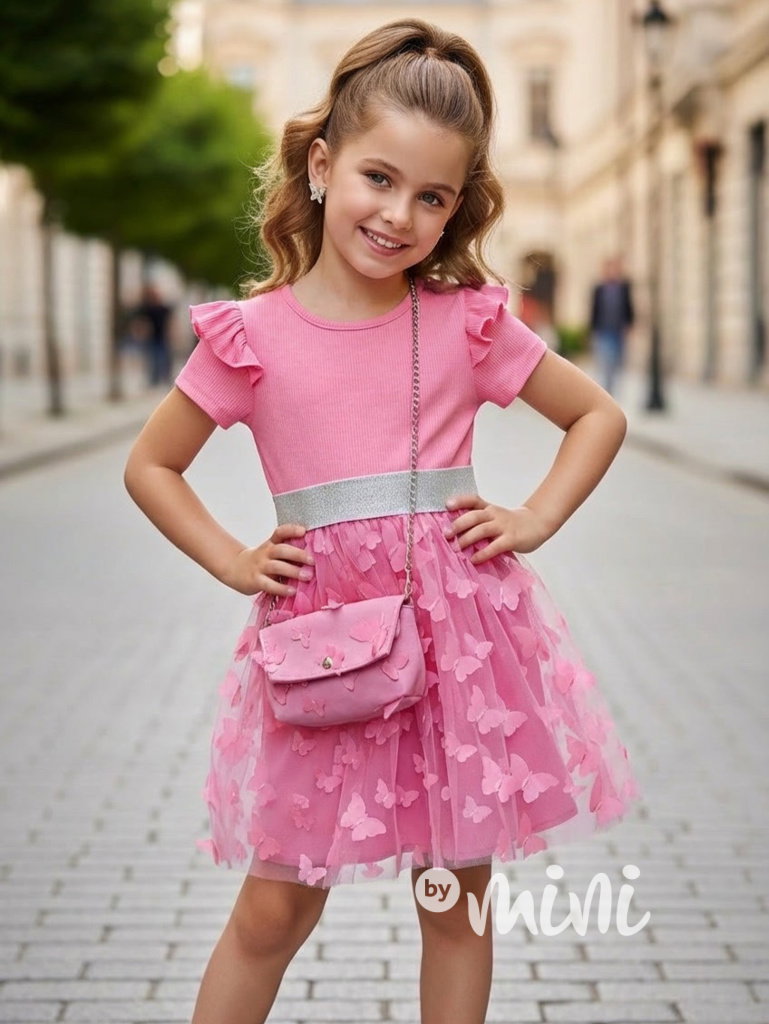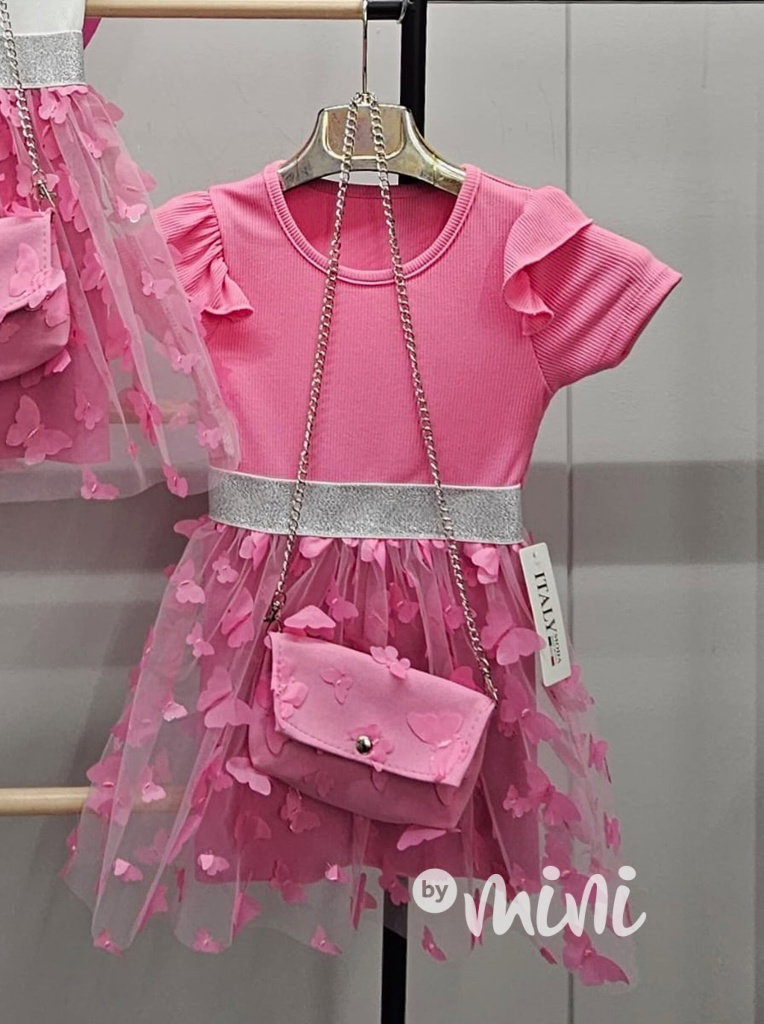 PREMIUM letní motýlkové šaty s kabelkou pink