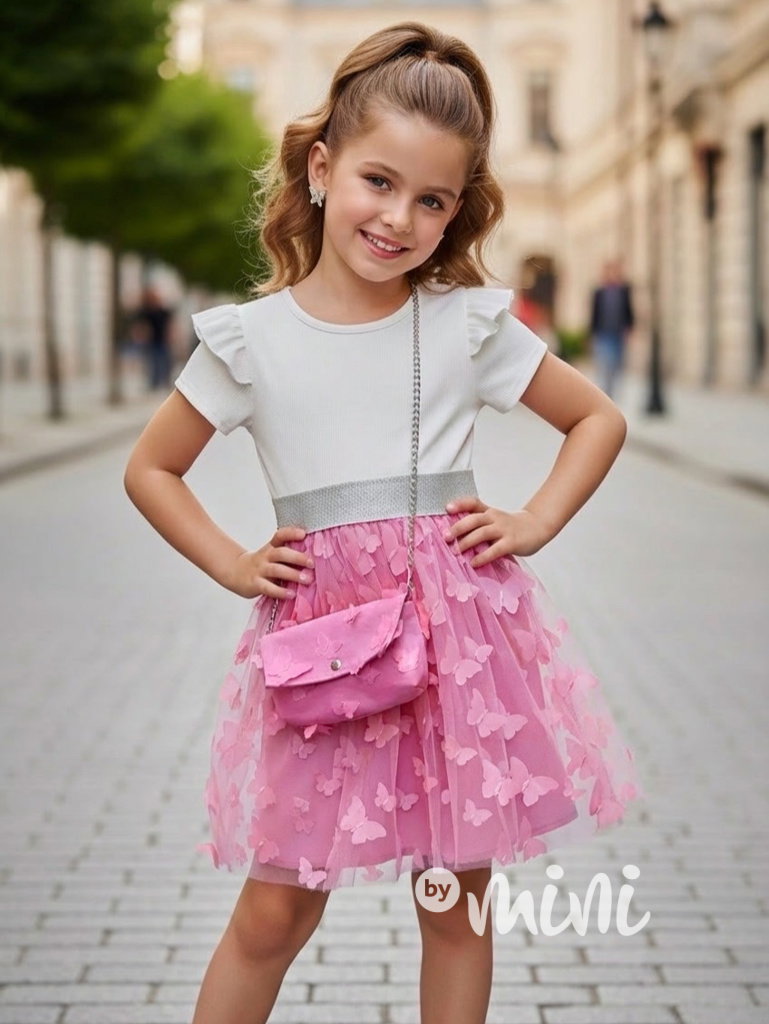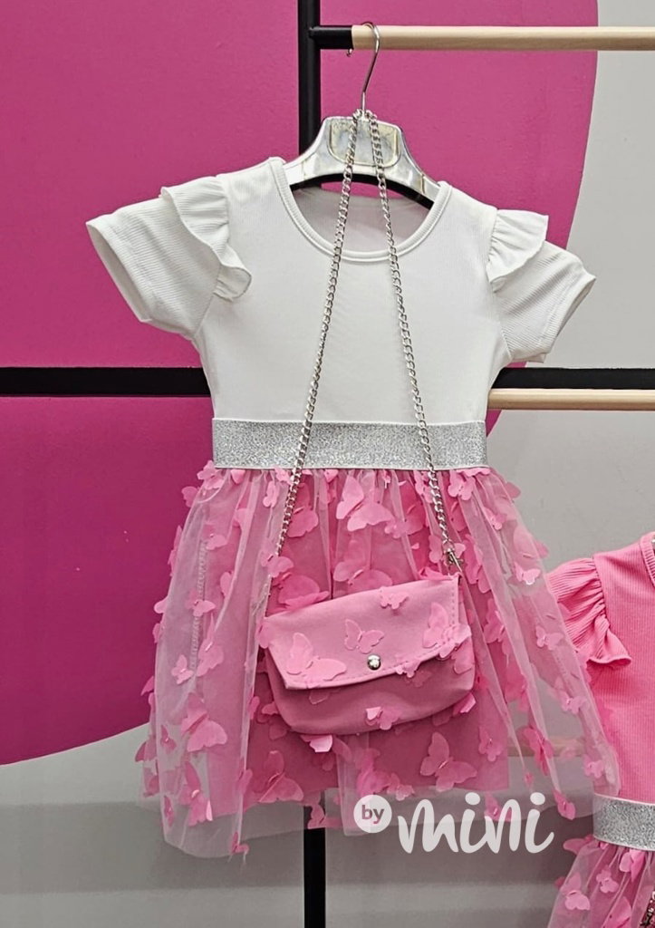 PREMIUM letní motýlkové šaty s kabelkou white/pink