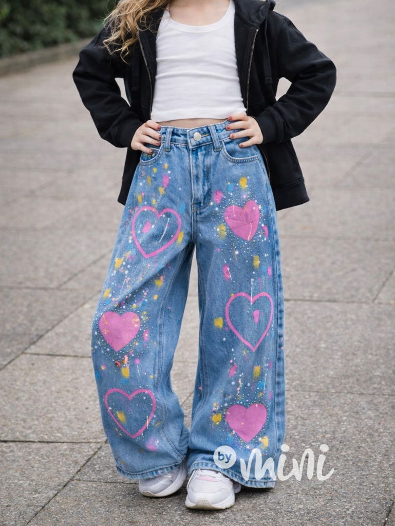 PREMIUM široké jeansy HEART blue