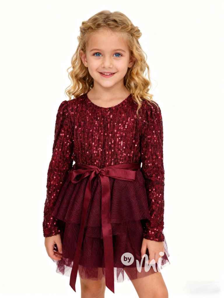 PREMIUM slavnostní šaty s tylem a flitry BORDO