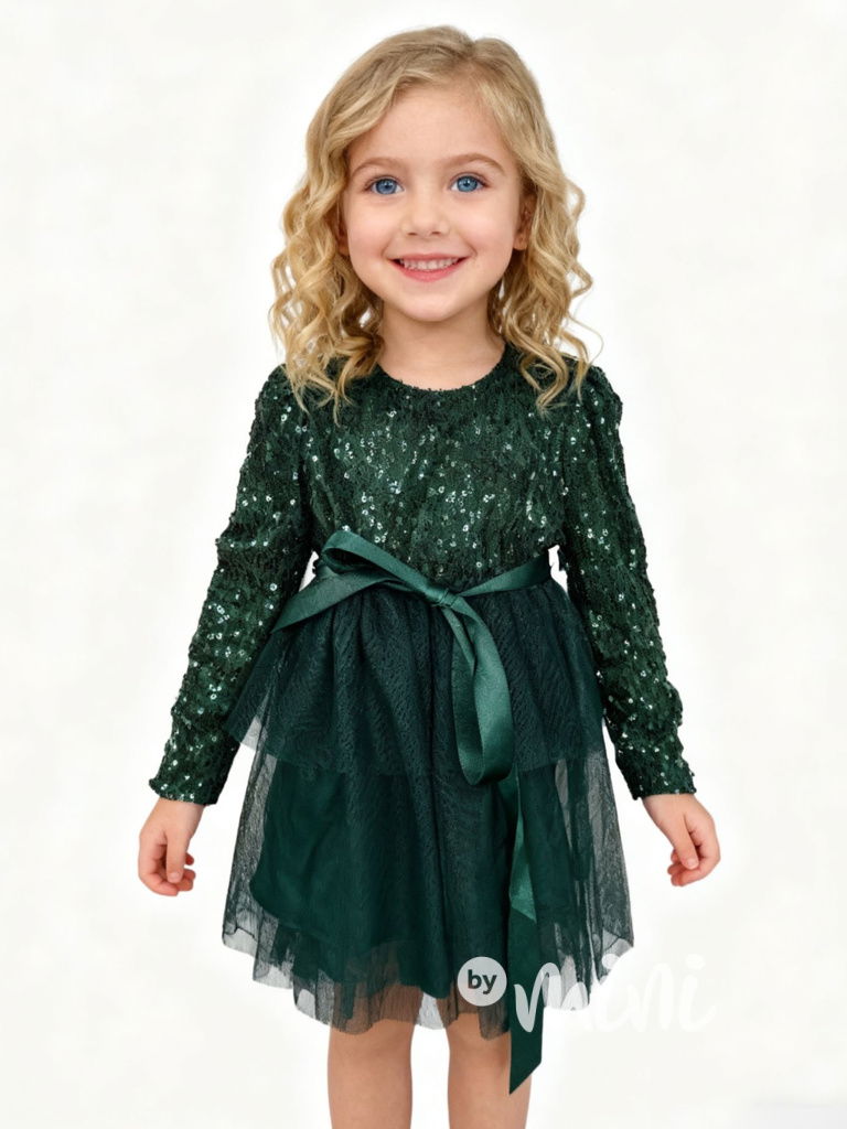 PREMIUM slavnostní šaty s tylem a flitry SMARAGD