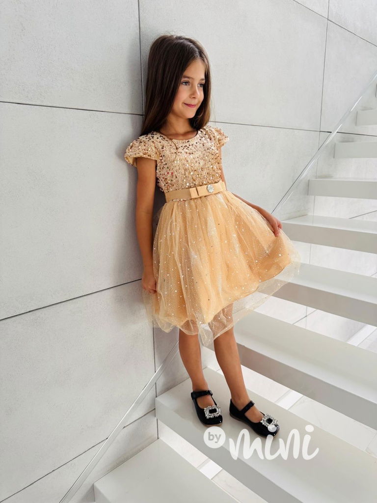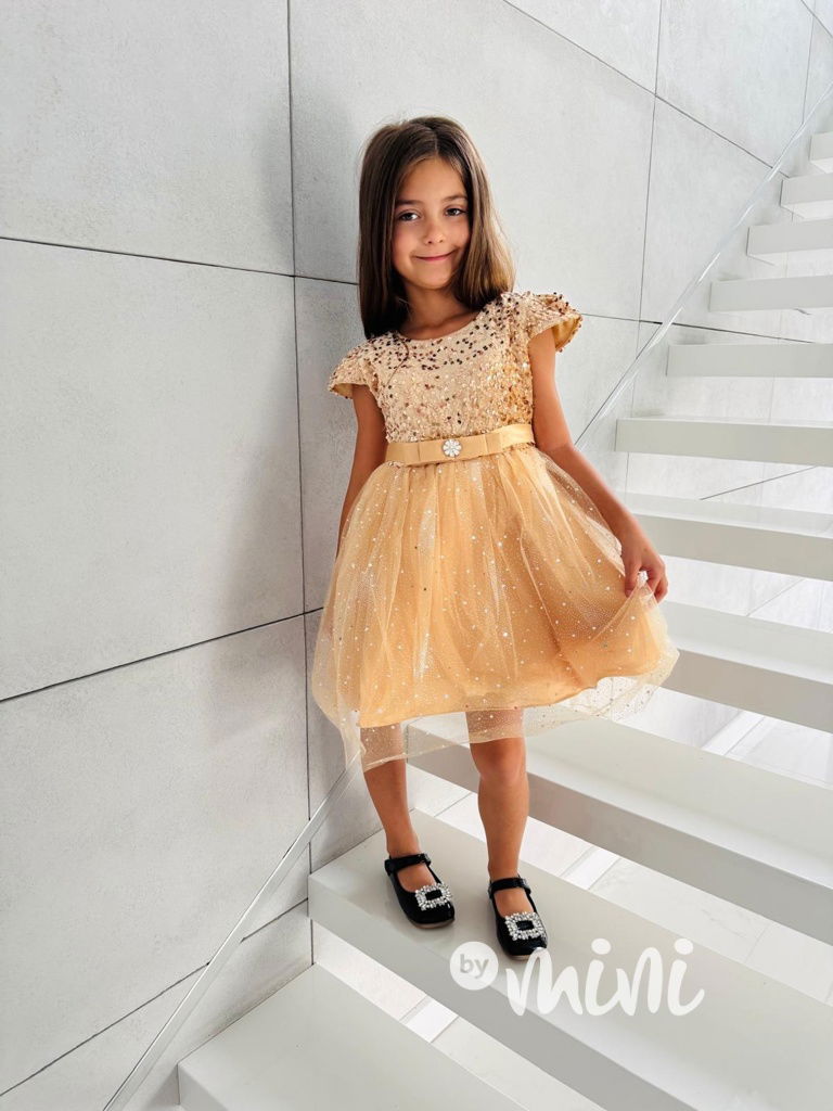 Krásné slavnostní šaty s maxi sukní a flitrovým vrškem. Za krkem na zip.