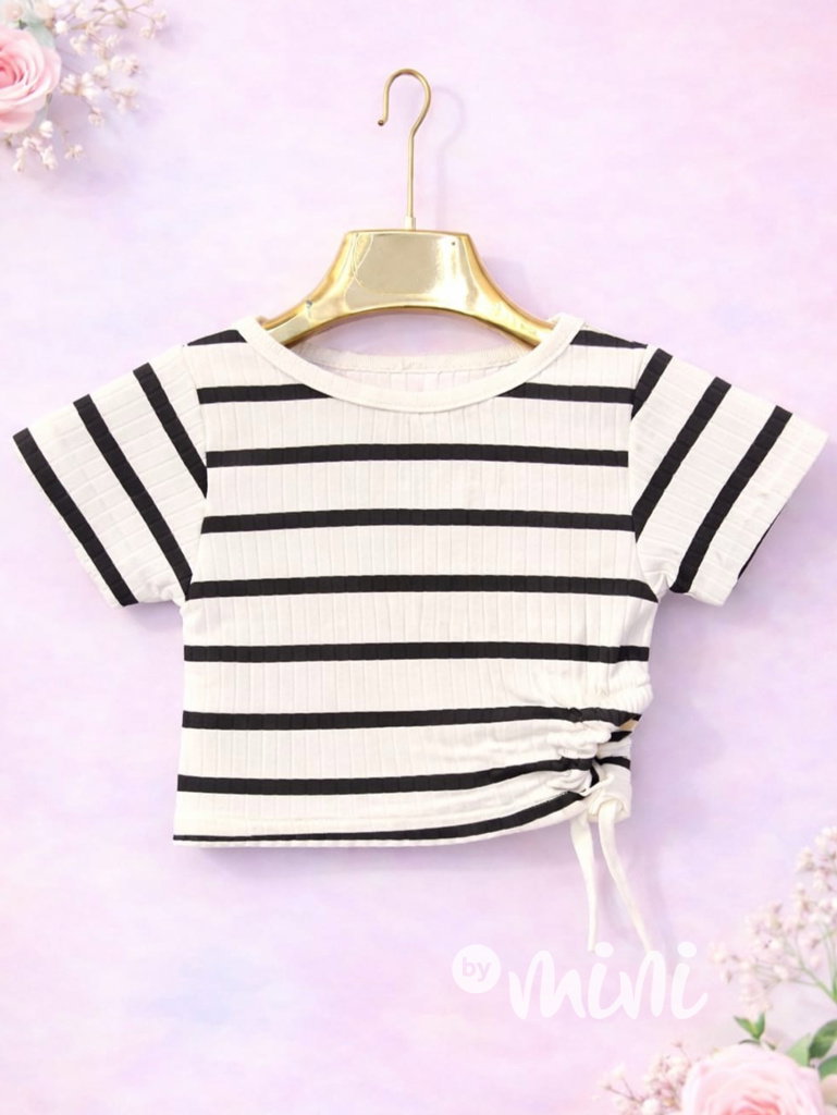 Pruhované crop triko na stahování white/black