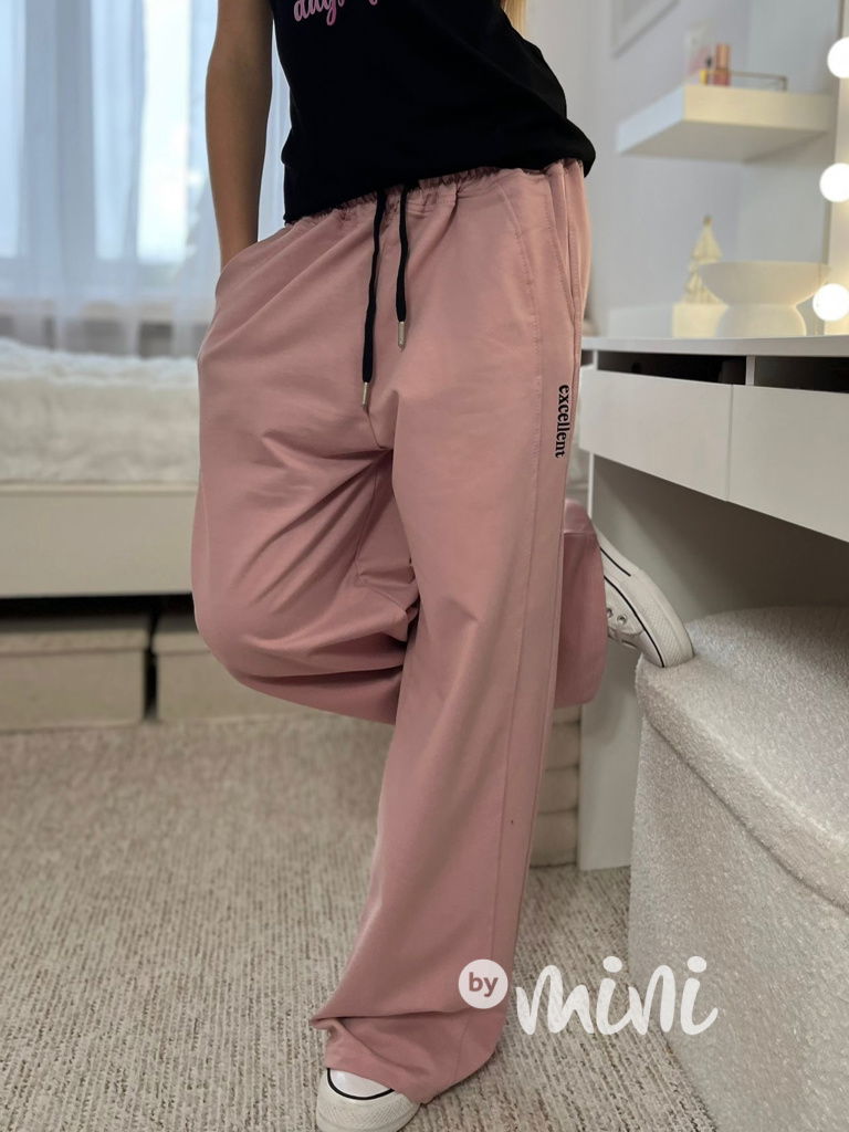 Stretch příjemné bavlněné tepláky volného lounge střihu, pas na stretch gumu, kapsy po stranách.