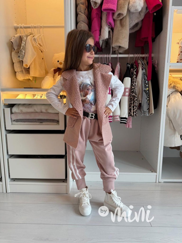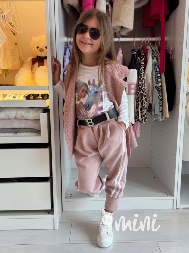 Jogger kalhoty s vyšším dolním nápletem, kapsy po stranách, pas na stretch gumu + černý pásek.