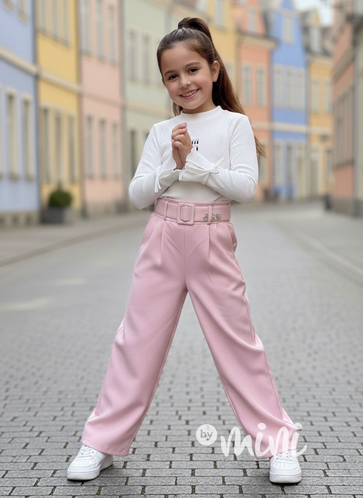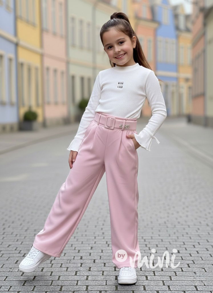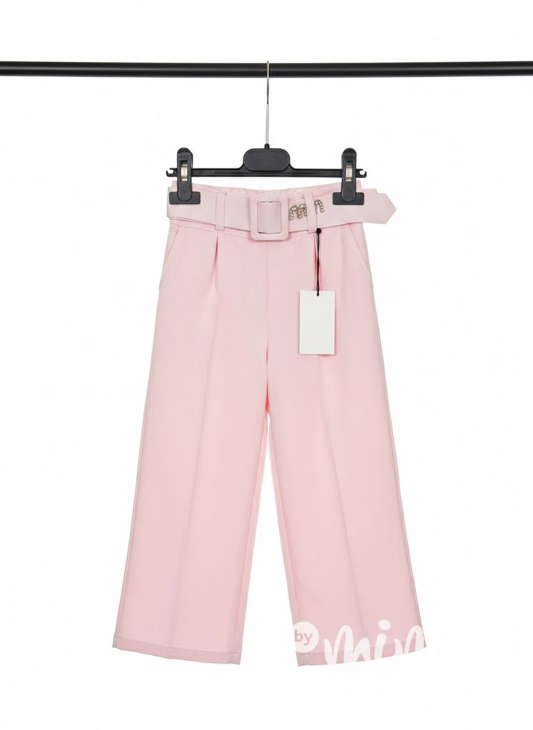 Růžové široké elegant kalhoty s páskem MIA
