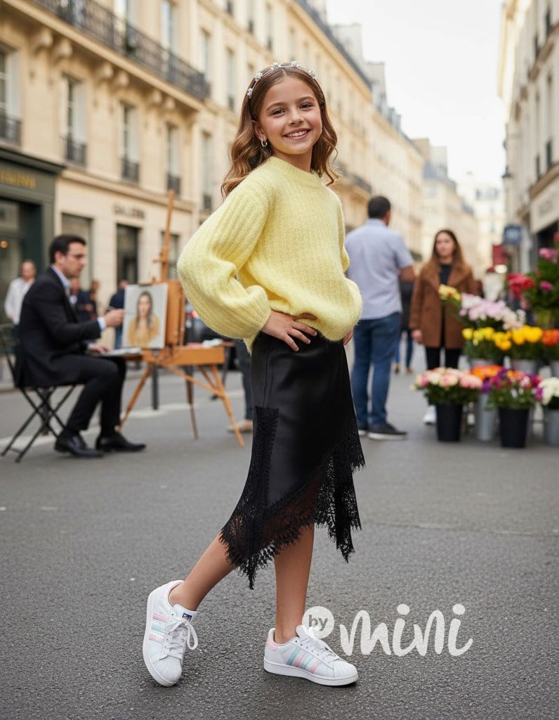 Fashion satin asymetrická midi sukně zdobená krajkou. pas na stretch gumu.