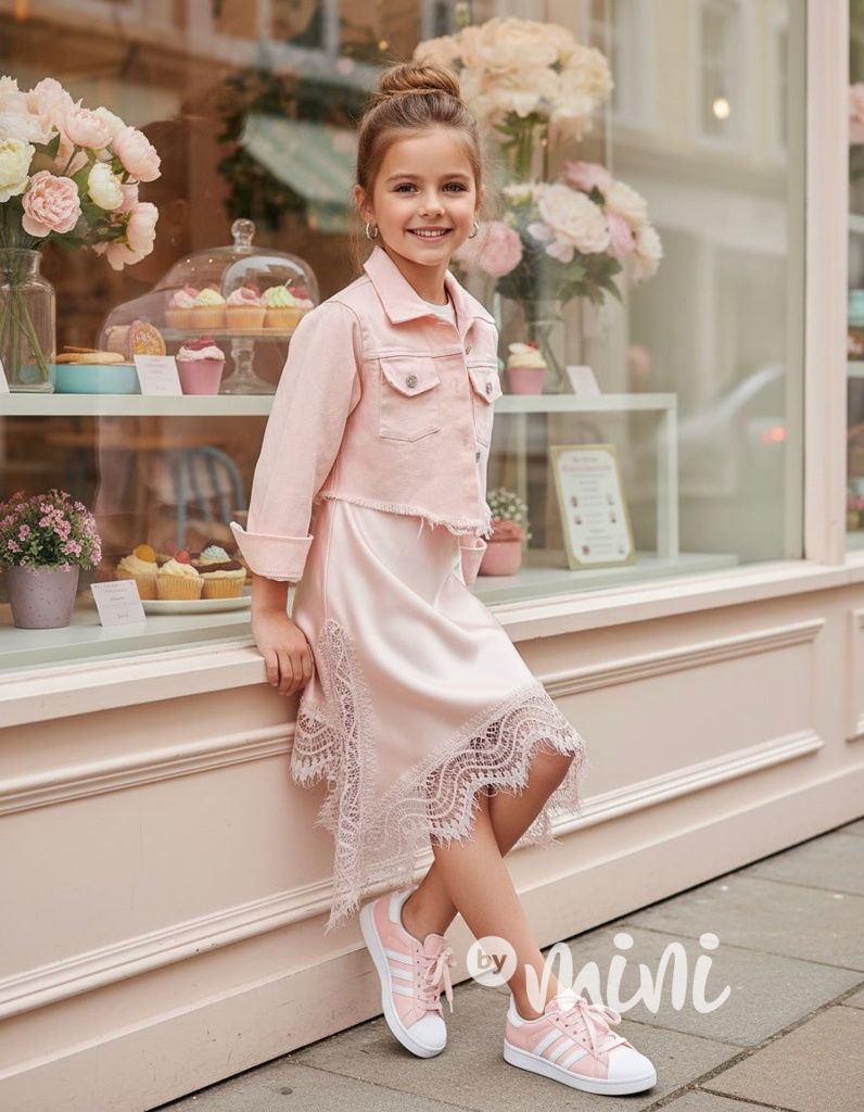Fashion satin asymetrická midi sukně zdobená krajkou. pas na stretch gumu.