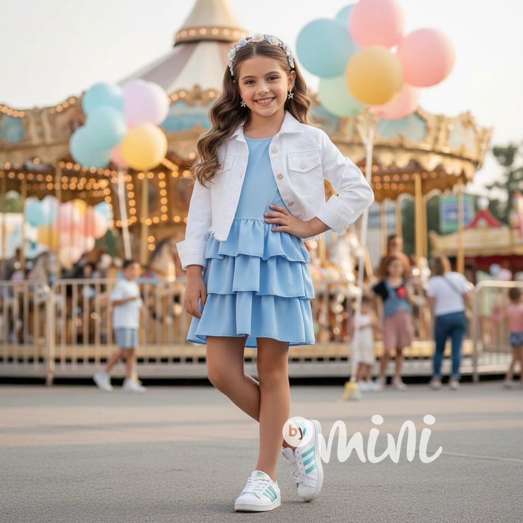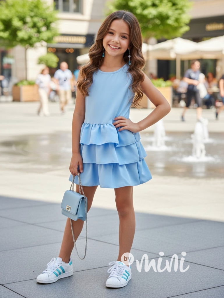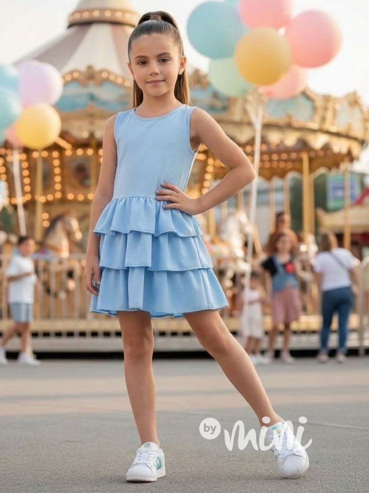 Šaty bez rukávů, vrstvená sukýnka, vhodné na celoroční nošení pod všechny mikiny, svetry nebo samostatně.