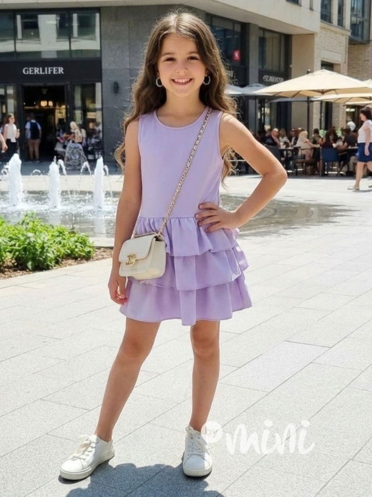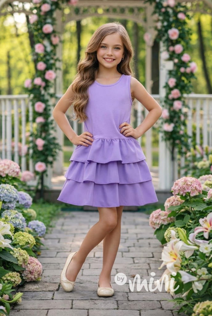 Šaty bez rukávů, vrstvená sukýnka, vhodné na celoroční nošení pod všechny mikiny, svetry nebo samostatně.