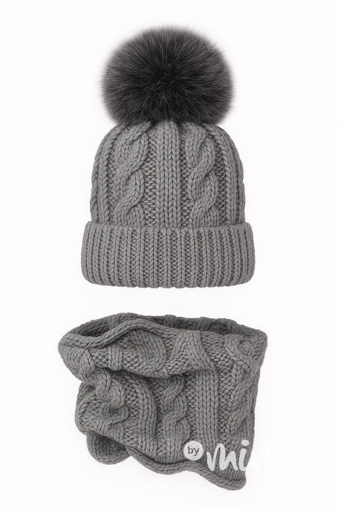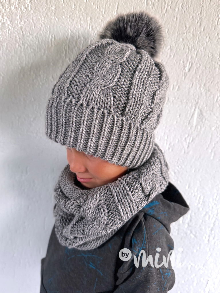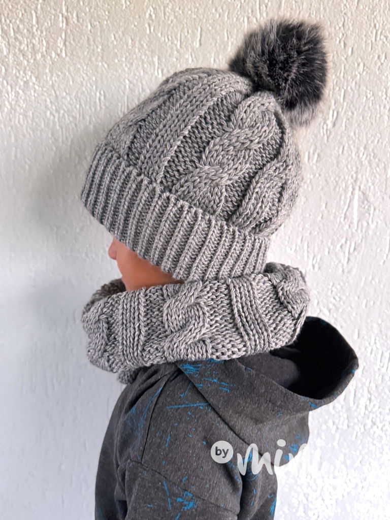 Zimní kulíšek s maxi bambulí + teplý nákrčník.