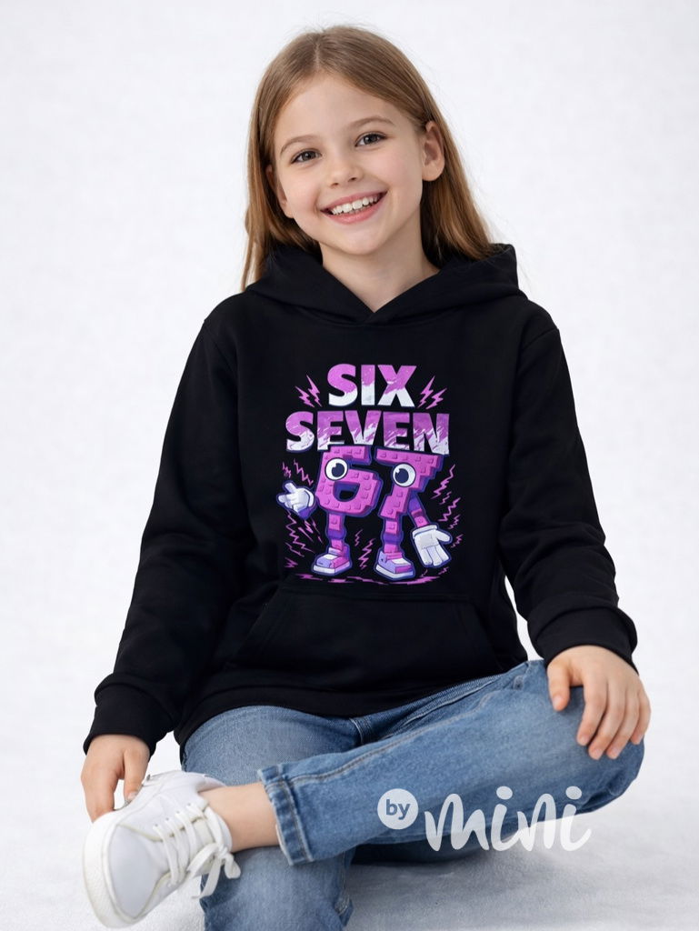 Bavlněná mikina s kapucí, motiv 67 - Six Seven.