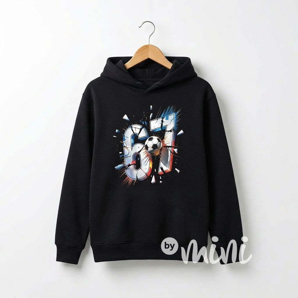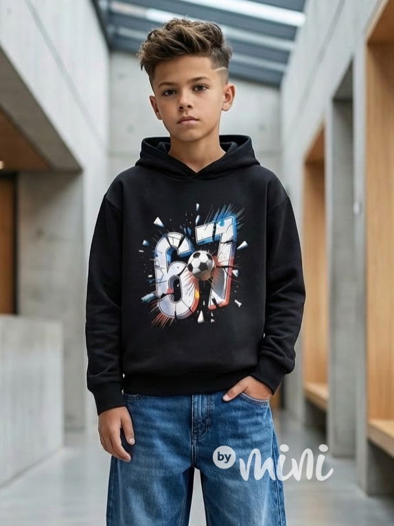 Černá mikina s kapucí, motiv 67 - Six Seven.