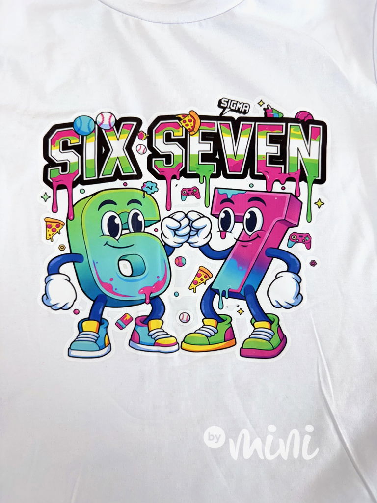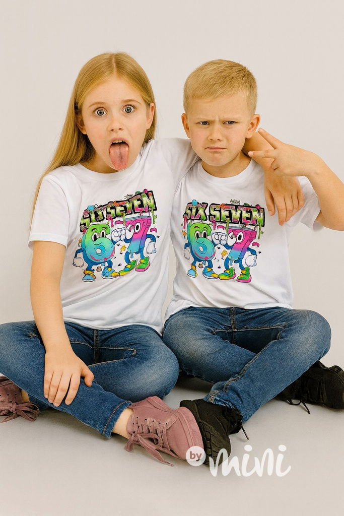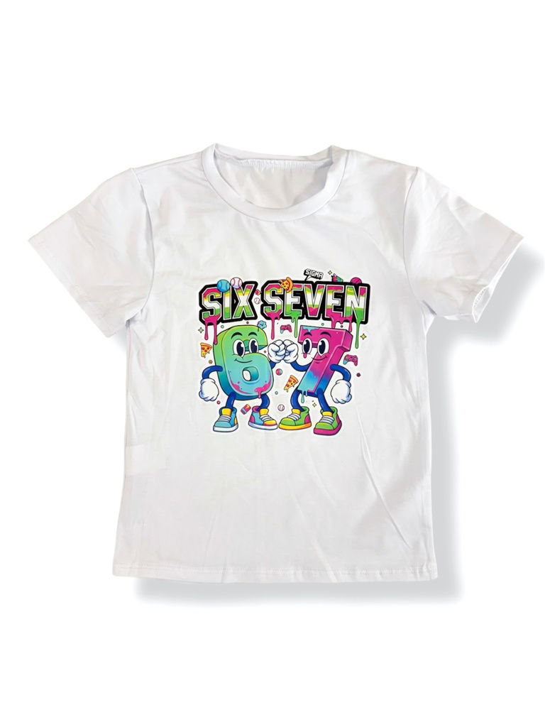 Bílé bavlněné triko, vpředu motiv Six Seven - 67.