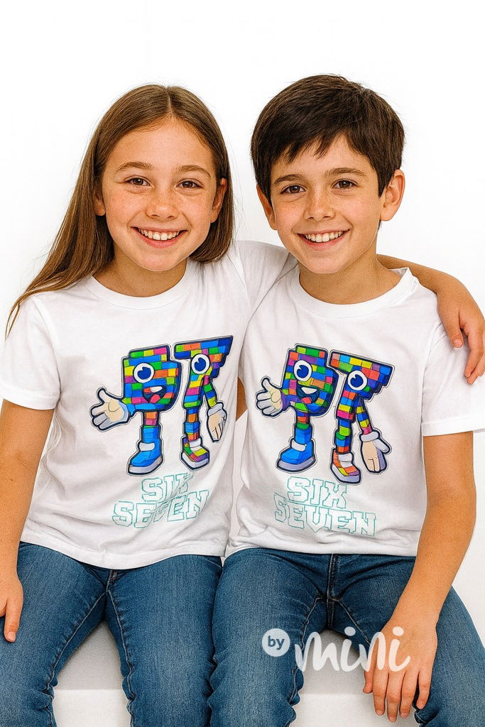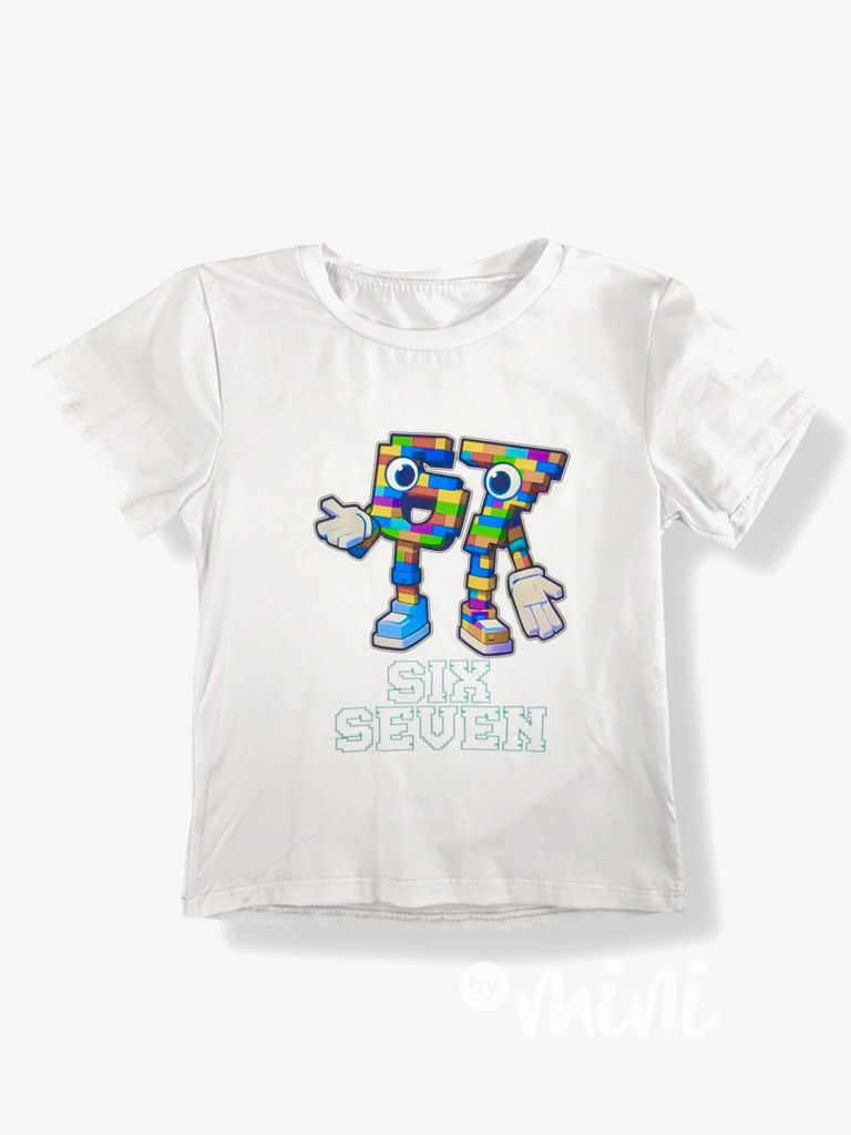Bílé bavlněné triko, vpředu motiv Six Seven - 67.