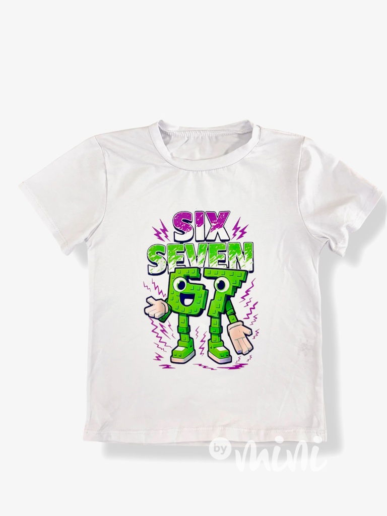 Bílé bavlněné triko, vpředu motiv Six Seven - 67.