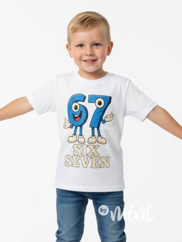 Bílé bavlněné triko, vpředu motiv Six Seven - 67.