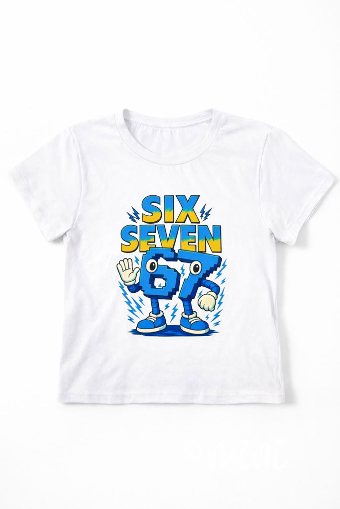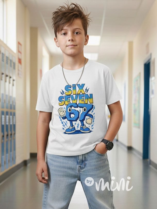 Bílé bavlněné triko, vpředu motiv Six Seven - 67.