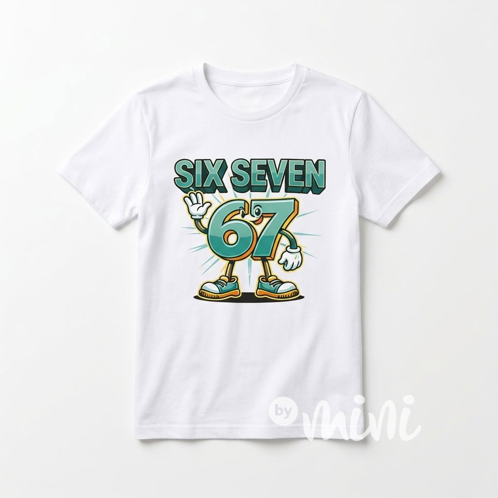 Bílé bavlněné triko, vpředu motiv Six Seven - 67.