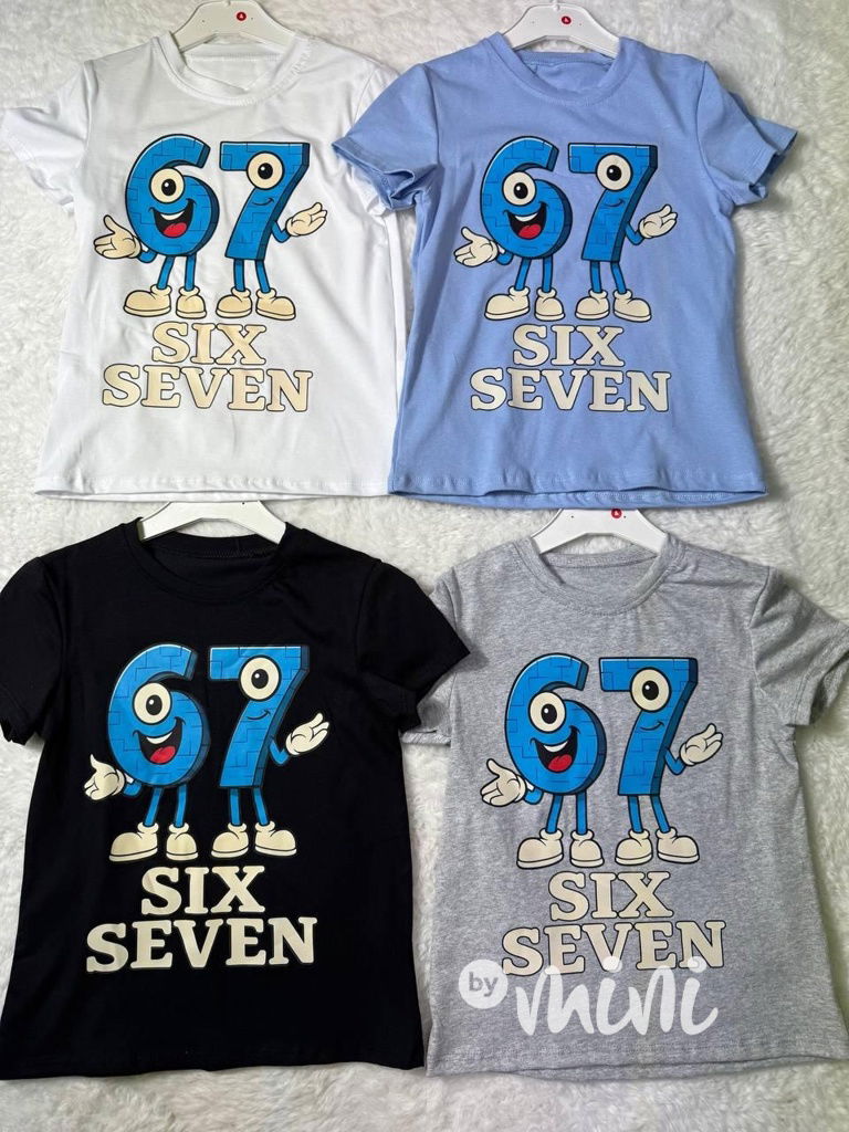 Černé bavlněné triko, vpředu motiv Six Seven - 67.