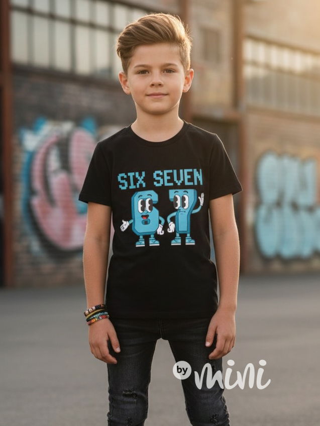 Černé bavlněné triko, vpředu motiv Six Seven - 67.