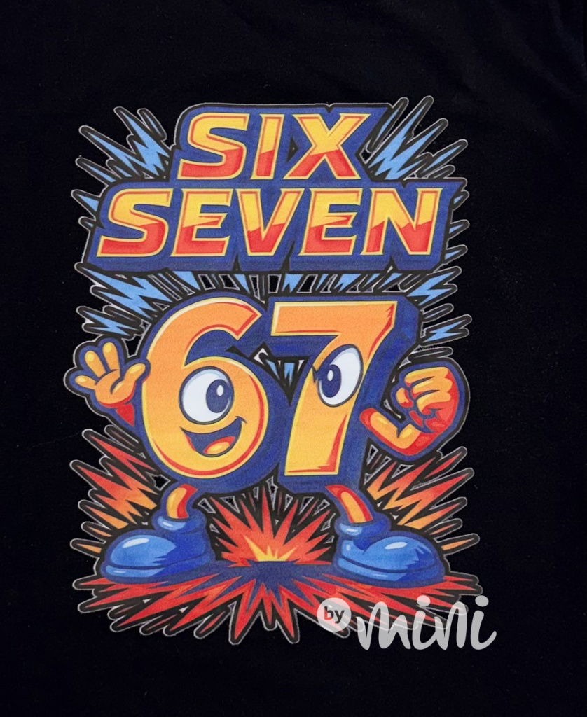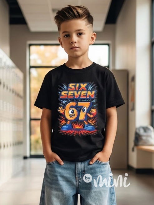 Černé bavlněné triko, vpředu motiv Six Seven - 67.