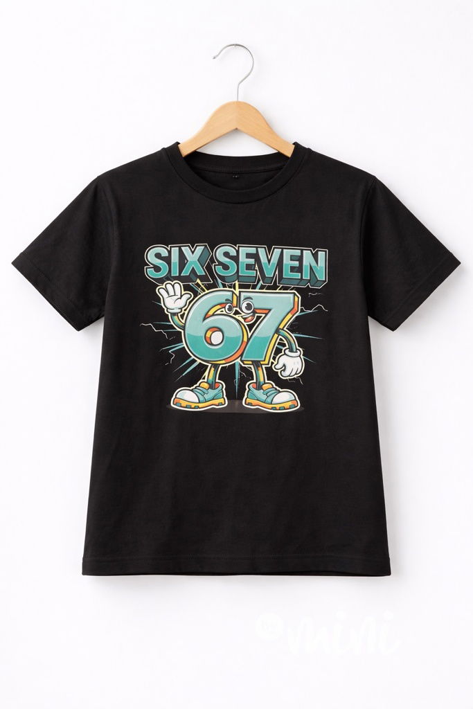 Černé bavlněné triko, vpředu motiv Six Seven - 67.
