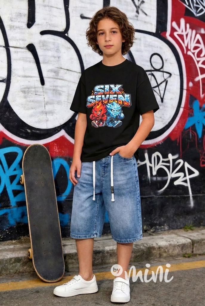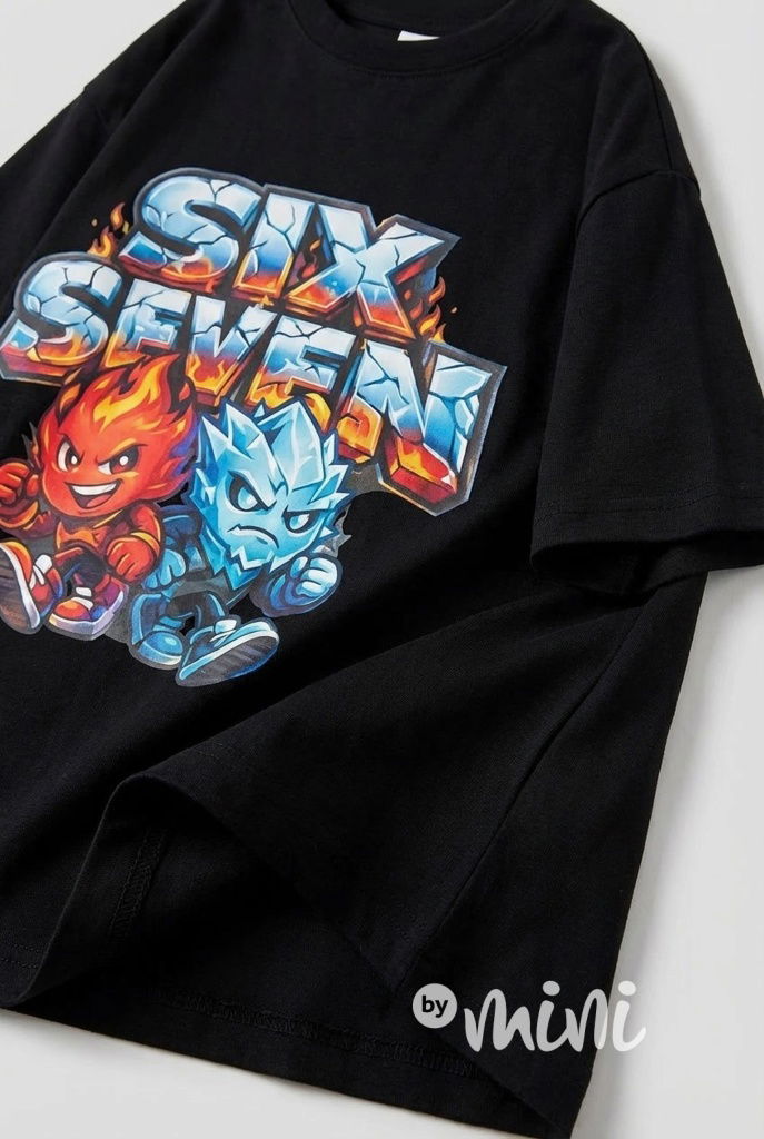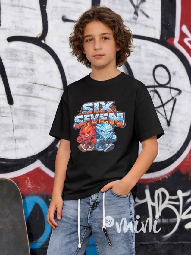 Černé bavlněné triko, vpředu motiv Six Seven - 67.